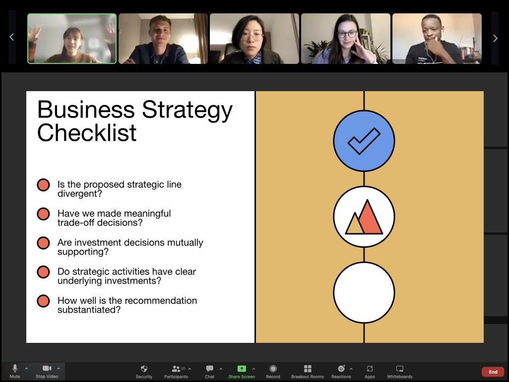 There are four tools used in the d.MBA. For written communication, we use Slack and for video conferencing, we use Zoom. To distribute the course content, you'll get access to a private Google Drive folder. Lastly, we will also use Miro to share assignments and useful templates.