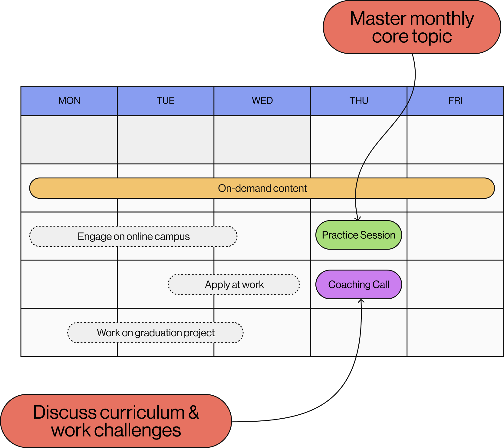 Your final milestone is a graduation project, solving a real-world challenge using a d.MBA framework. You’ll get personal, one-on-one feedback from d.MBA mentors to sharpen your thinking and strengthen your results.