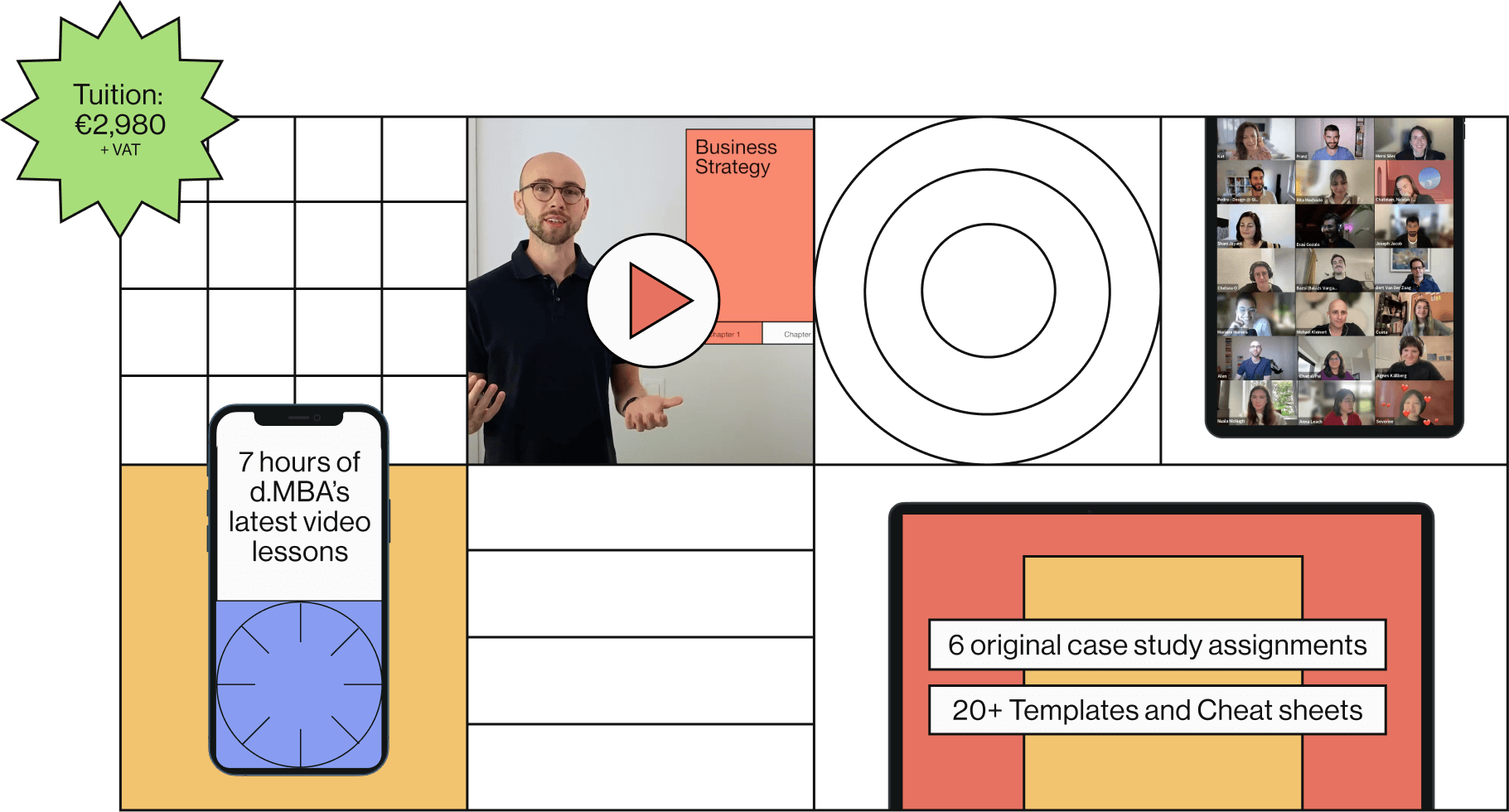 Includes 7 hours of the latest version of d.MBA curriculum, including Business Empathy, Business Strategy, Business Models, Prototyping with Numbers, Business and Design Metrics, and Design Your Impact.